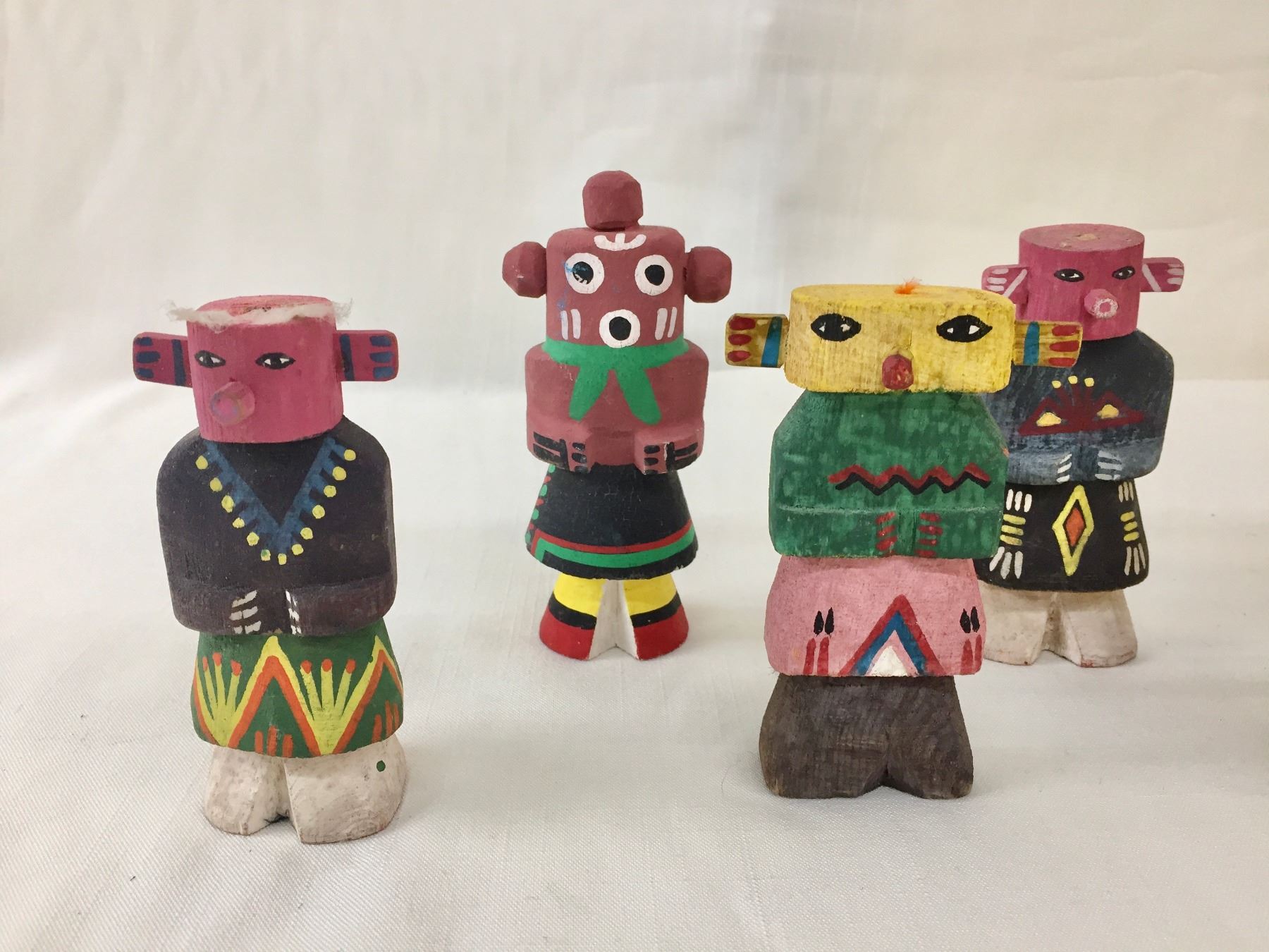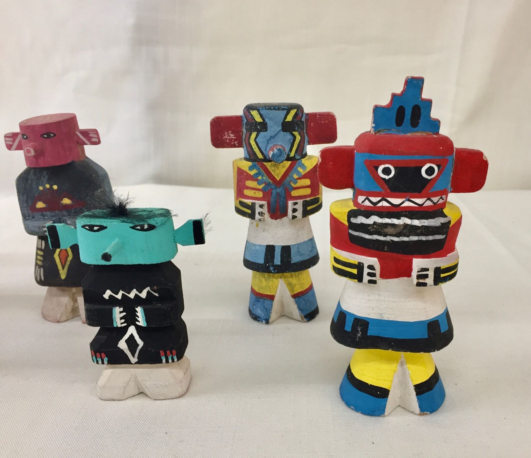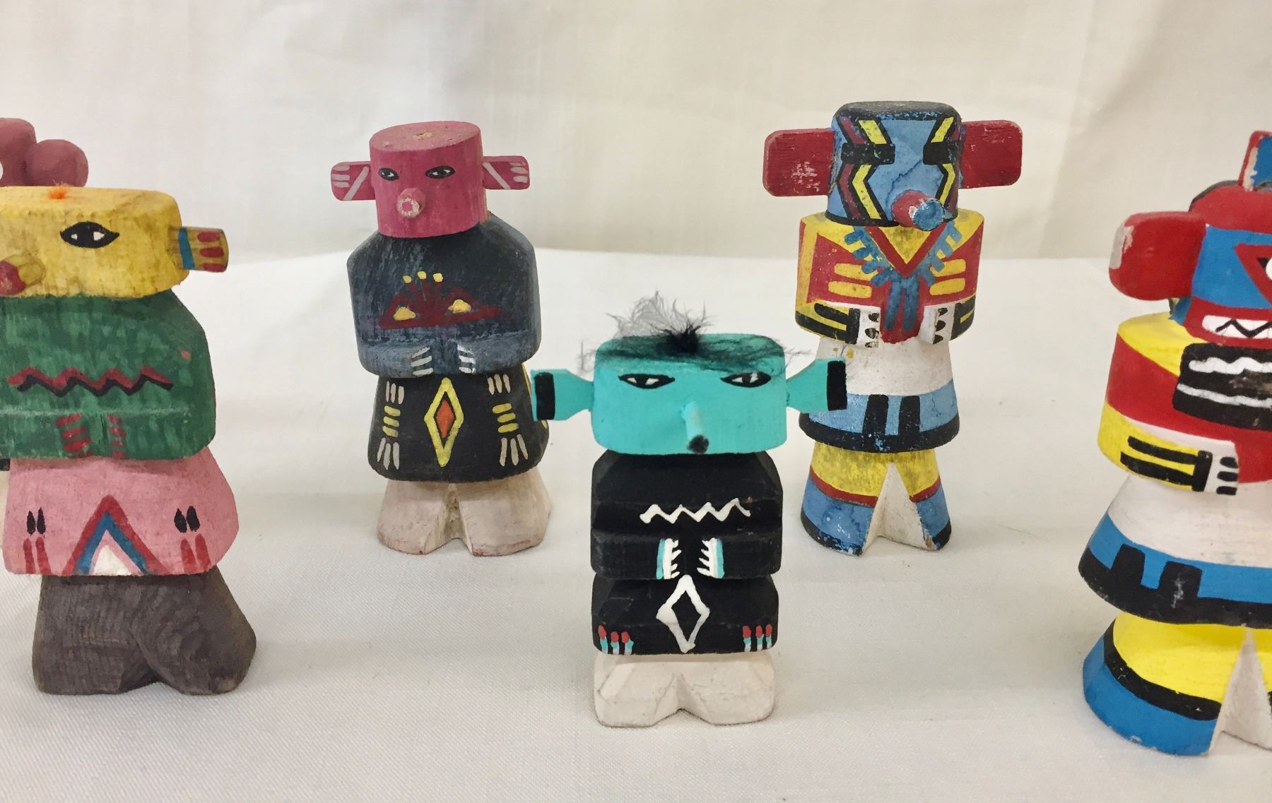 Description: Featured for sale in this lot are seven, classic, hand painted, Route 66 Kachinas. Maker: Various.