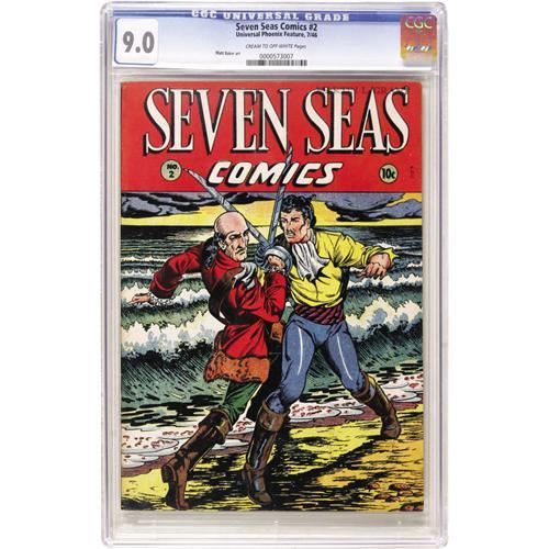 <B>Seven Seas Comics #2 (Universal Phoenix Feature, 1946) CGC VF/NM 9.0 Cream to off-white pages.</B></I> Highly sought-after because of its Matt Baker interior art, copies of this smaller publisher distributed title can be tough finds. This one's one of the finest copies you can hope to find of #2. Overstreet 2006 VF/NM 9.0 value = $694; NM- 9.2 value = $950. CGC census 3/07: 2 in 9.0, 1 higher.<BR><BR><b>Shipping:</b> Comics - Slabbed (certified) (<a target=""_blank"" href=""http://www.heritageauctions.com/common/shipping.php"">view shipping information</a>)
