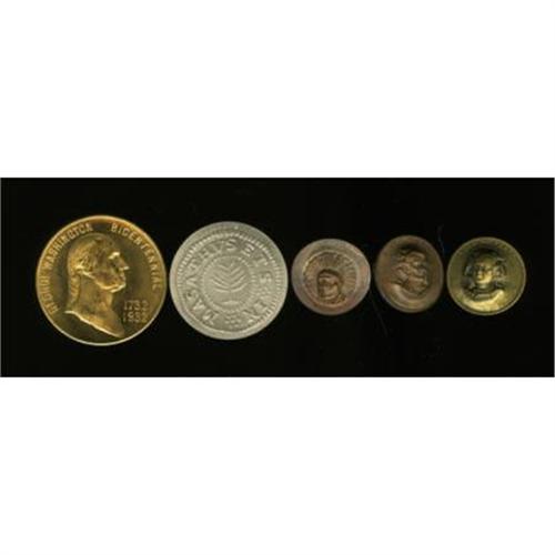 <B>Seven Tokens and Medals With Three Pop-Out Cents.</B></I> Contains three 1930 Lincoln cents with pop-out heads, one each of the following George Washington, Abraham Lincoln, Indian chief with war bonnet, plus a couple of other tokens.<BR><BR><b>Shipping:</b> Coins & Currency (<a target="_blank" href="http://www.heritageauctions.com/common/shipping.php">view shipping information</a>)