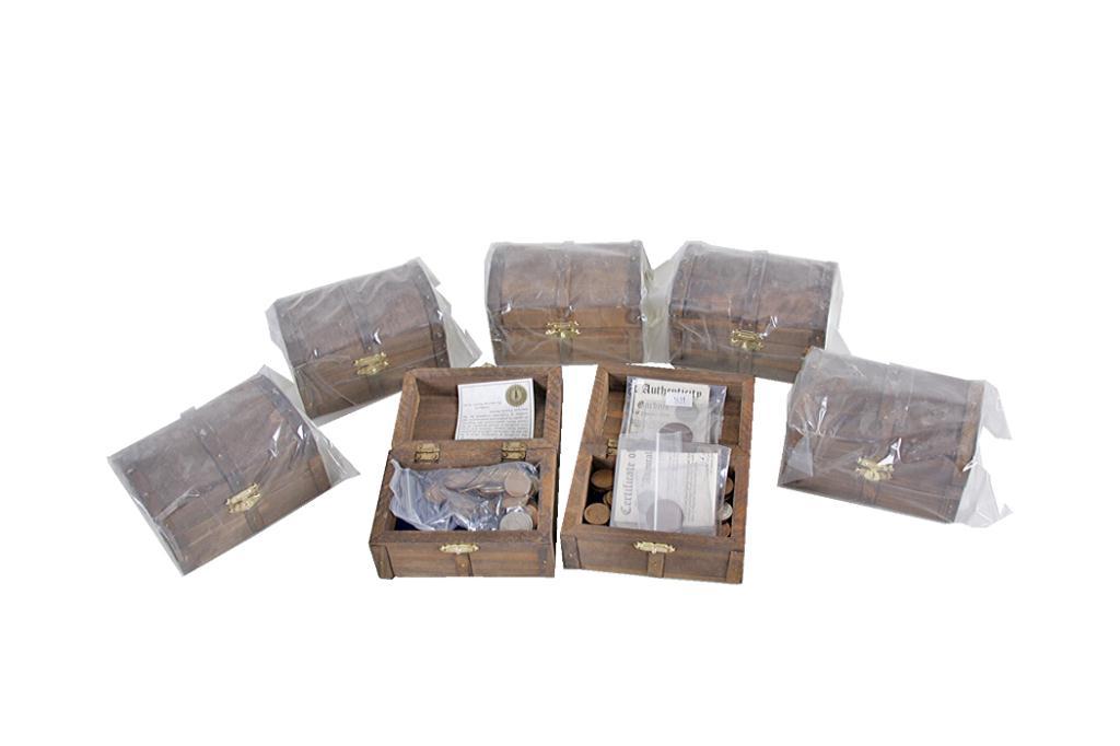 Seven Treasure Chests From the American Historic Society, each one contains wheat pennies, buffalo nickels, and mercury dimes.From the American Historic Society, each one contains wheat pennies, buffalo nickels, and mercury dimes.