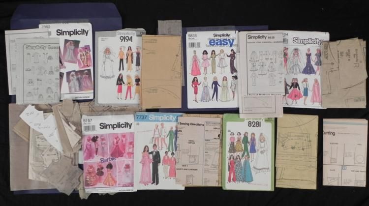 Ever wonder how the Barbie and Ken's clothese were made? Now's here is you chance to learn how. We are offering seven vintage Barbie and Ken clothing patterns from Simplicity. You will receive numbers 7737, 8281, 9194, 9334, 9838, 7362, and 8157. Four of them have been cut out and three have not. All of them can fit a doll between the sizes of 11 1/2 - 12 1/2", except number 9194, which only fits a 11 1/2" doll. All of them are with their original folders and instructions on how to construct the clothes. There conditions range from good to excellent. Now you can do what the manufactures have done for years by bidding on this great lot today!!