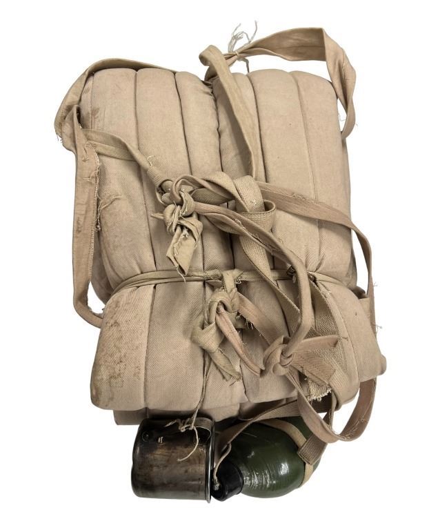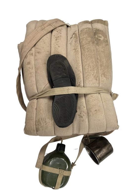 Made by the propmaster, a Chinese officer gear consisting of padded bedroll, a green metal canteen, a metal cup and a pair of shoes.