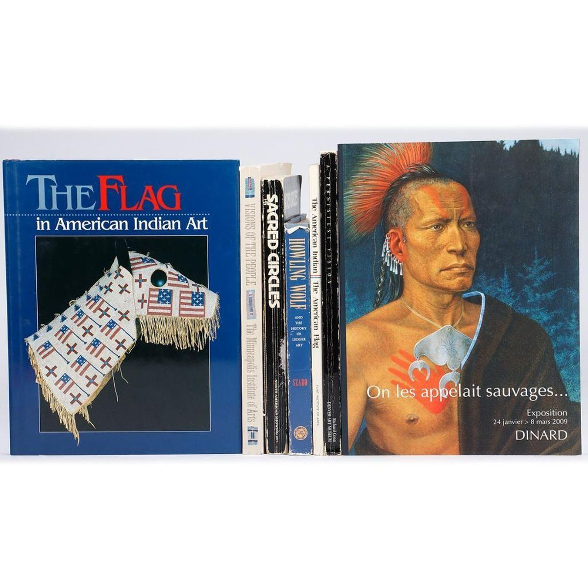Seven books on Native American art with an emphasis on cultures of the Plains. 1.) COE, RALPH T. Sacred Circles, Two Thousand Years of North American Indian Art. Art Council of Great Britain/Nelson Gallery of Art, 1976-1977. 2.) CONN, RICHARD, A. Persistent Vision, Art of the Reservation Days. Denver Art Museum, 1986. 3.) HERBST, TOBY, and JOEL KOPP. The Flag in American Indian Art. New York State Historical Association/University of Washington Press, 1993. 4.) HODGE, G. STEWART, and POHRT, RICHARD A. The American Indian, the American Flag. Flint Institue of the Arts, 1976. 5.) LURASCHI, MARIO, and ANTOINE TZAPOFF. On les appelait sauvages... Exposition 24 janvier - 8 mars 2009. Paris: Dinard, 2009. 6.) MAURER, EVAN M., et al. Visions of the People, A Pictorial History of Plains Indian Life. Minneapolis Institute of Arts, 1992. 7.) SZABO, JOYCE M. Howling Wolf and the History of Ledger Art. Albuquerque: University of New Mexico Press, 1994. Condition: Fair-Very Good; the volumes are from a well-used research library; some light toning; some with owner's signature.