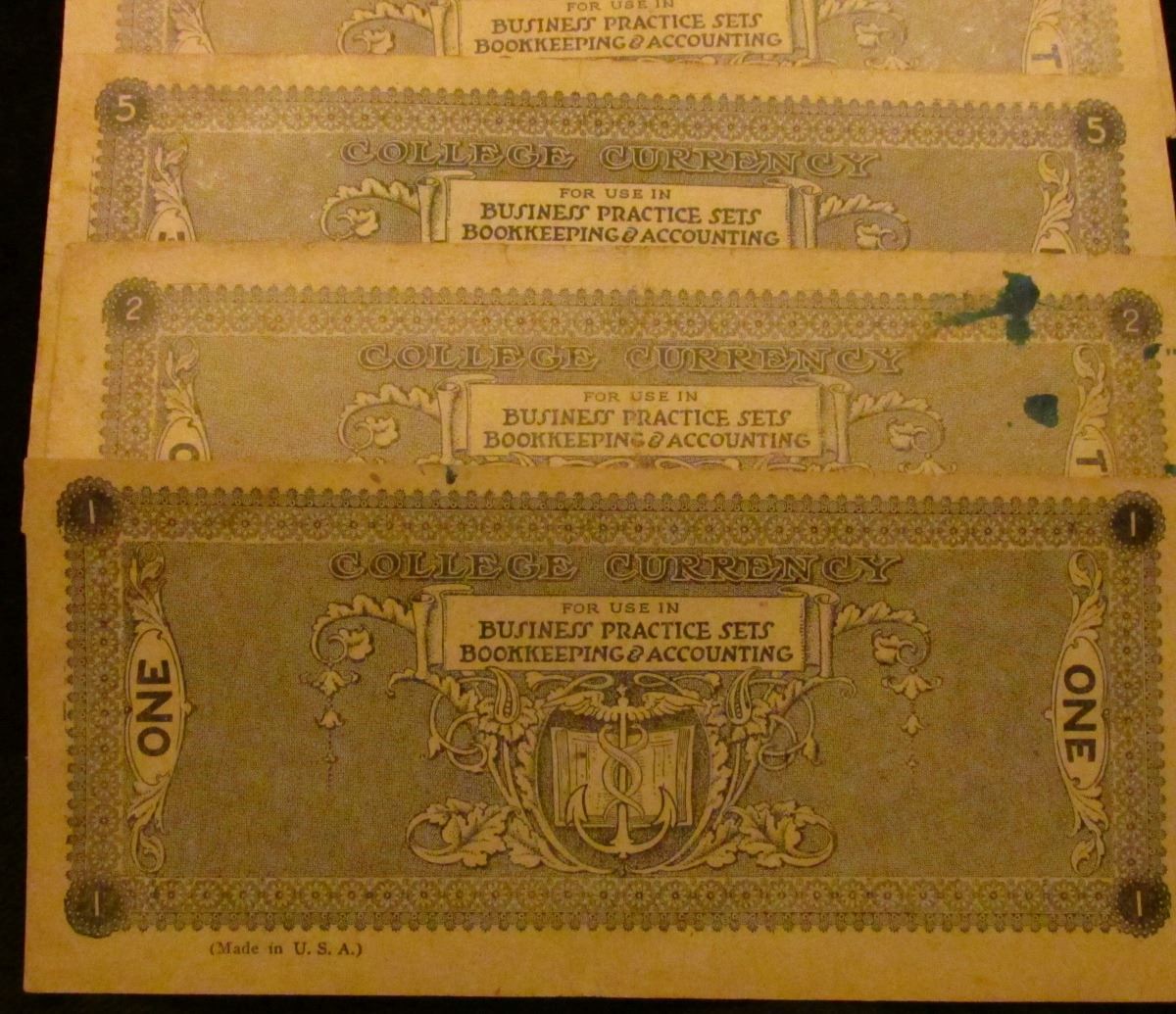 Seven-piece Set of "College Currency For Use in Business Practice Sets Bookkeeping & Accounting", in