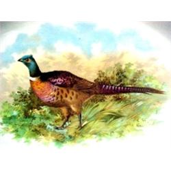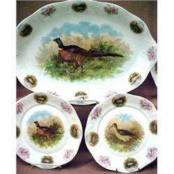 Seven piece game plate set including six 9" plates depicting four different game birds, and a 17" platter depicting pheasant, marked on bottom Mignon Z. S. & Co., Bavaria, early 20th C. Estimate 250/400