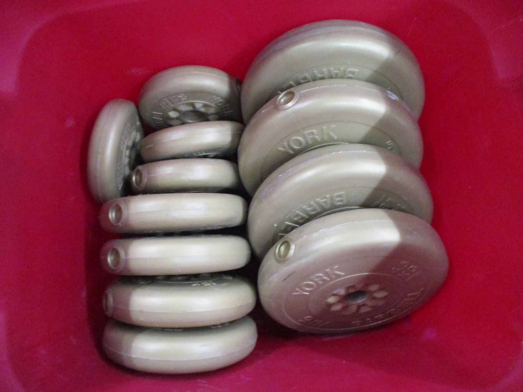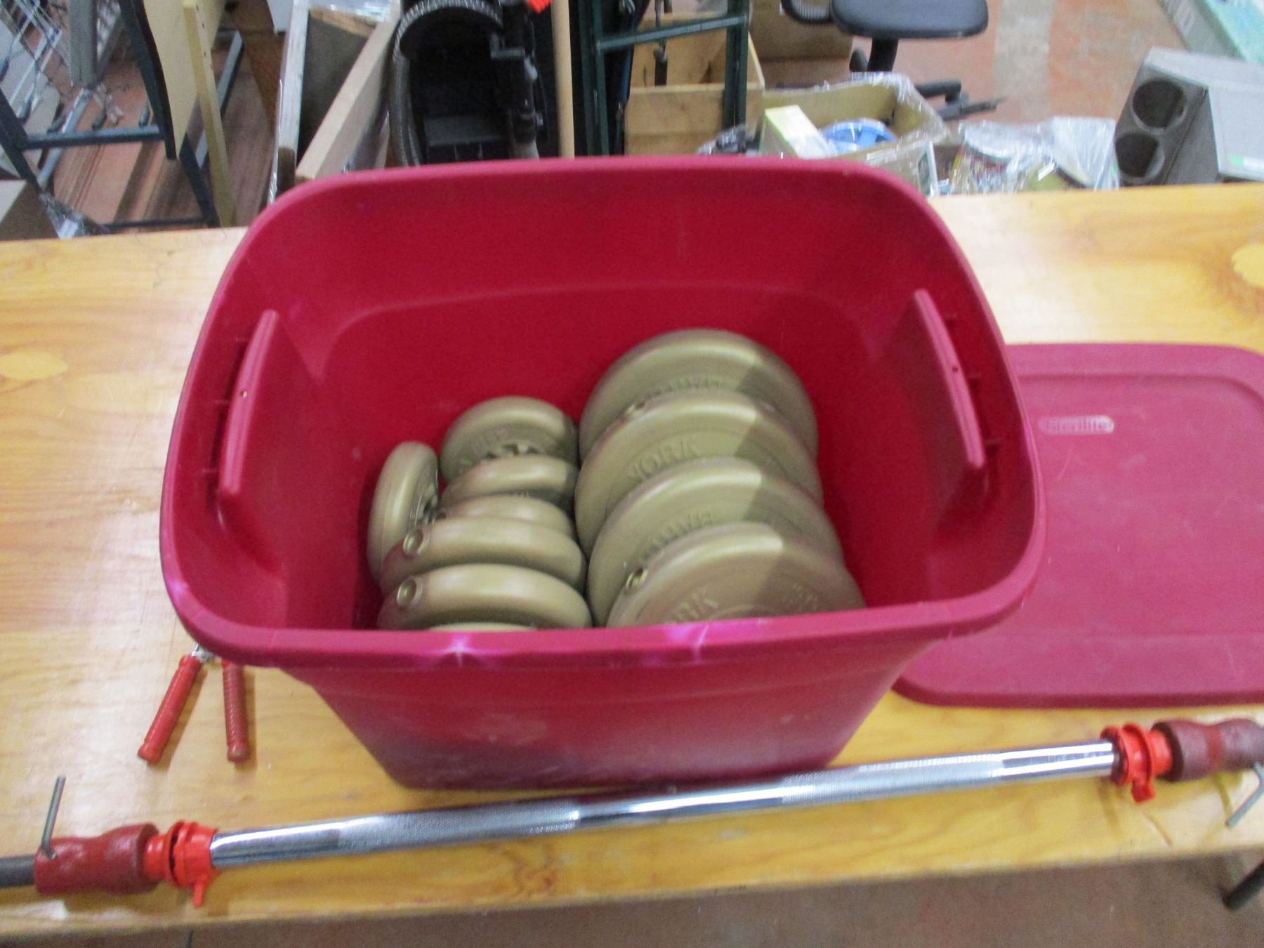 Seventy Pounds of Free Weights with Lift Bar + Tub