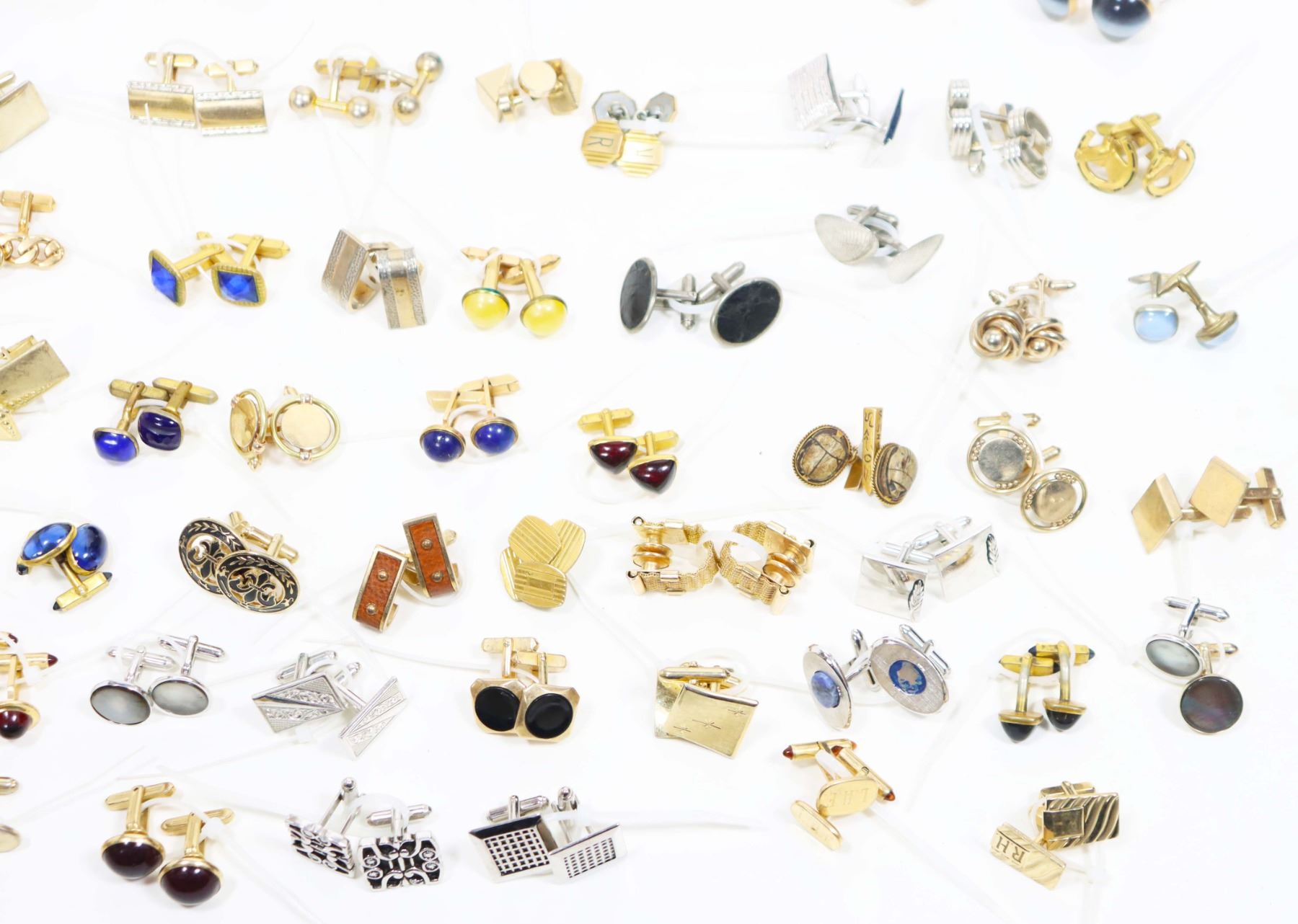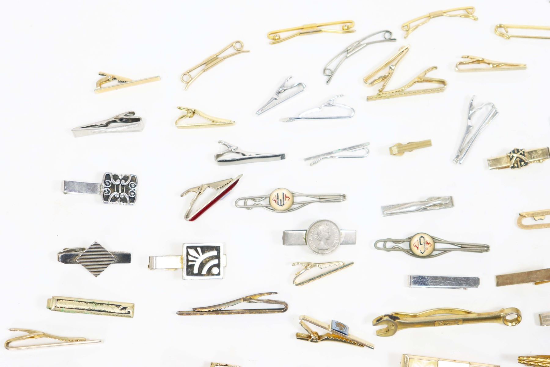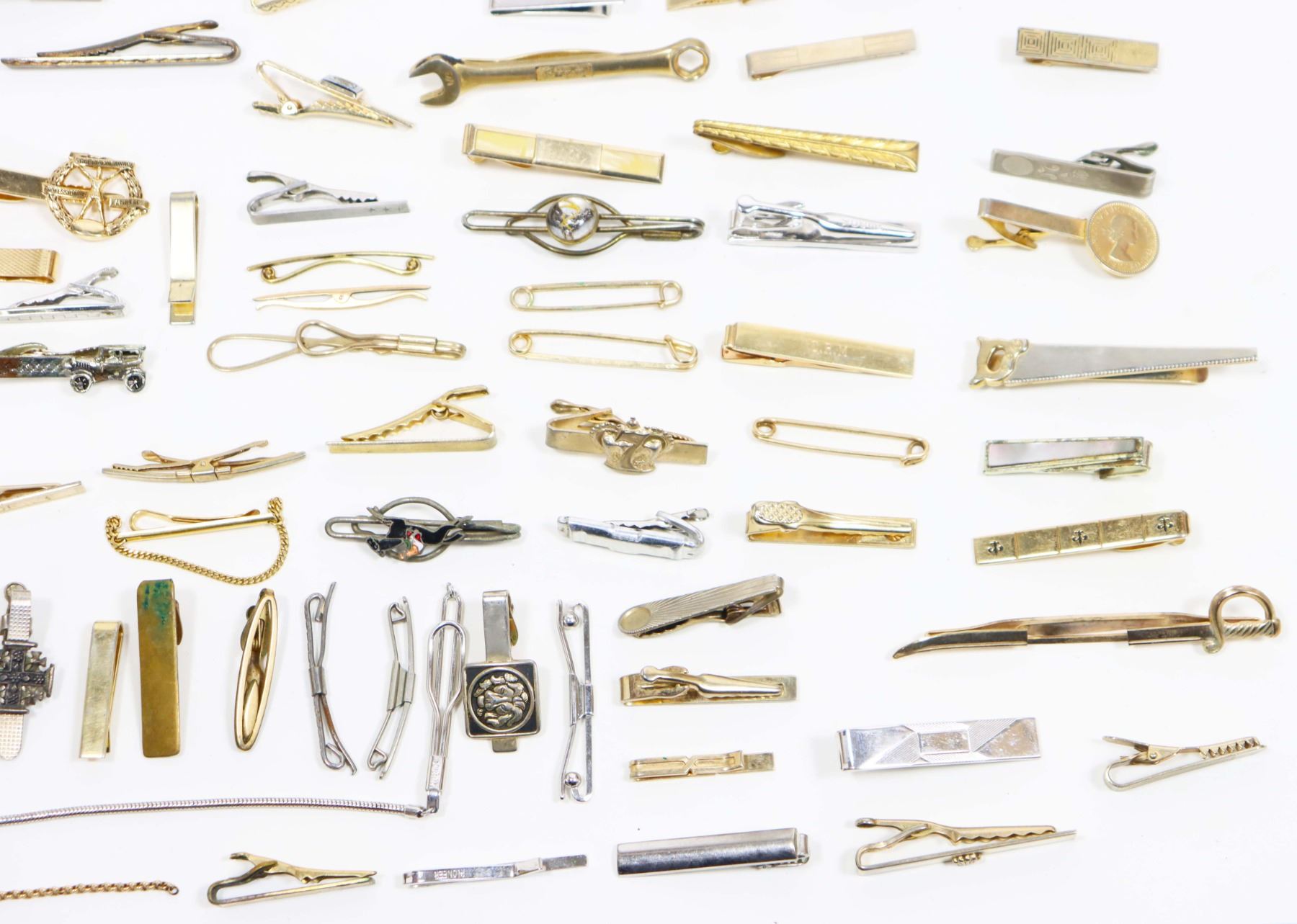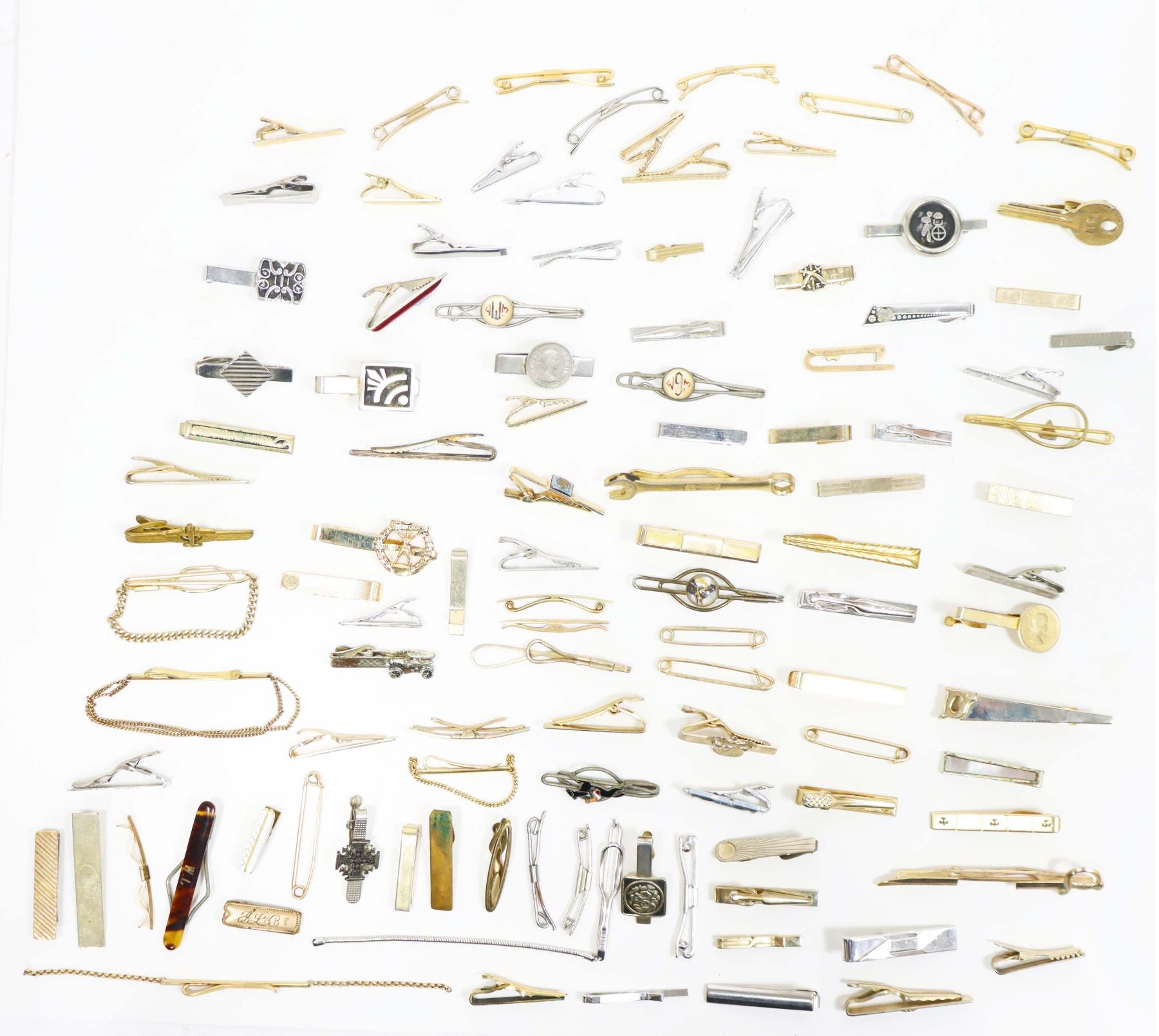 150+ lot of miscellaneous jewelry and other costume items, including necklaces, bracelets, tie clips, earrings, pins, and more! A treasure trove of fabulous vintage items waiting to be explored!