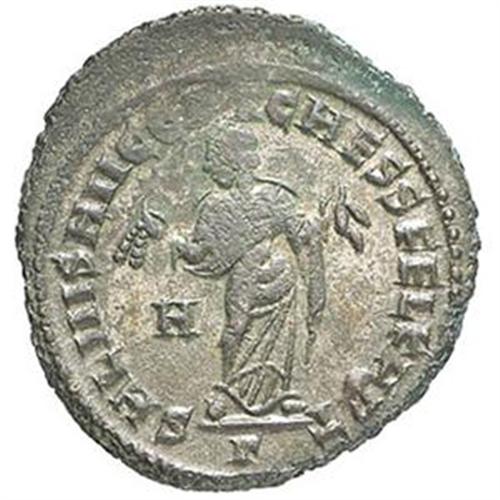 Impero Romano. Severo II (306-307). Follis. D/ FL VAL SEVERVS NOB CAES. Testa laureata a destra. R/ SALVIS AVGG ET CAESS FEL KART. Cartagine, stante di fronte con il capo a sinistra, tiene frutti in entrambe le mani. Nel campo a sinistra, H. In esergo: Γ. RIC 40a. gr. 10.89 AE. qSPL/BB+.
