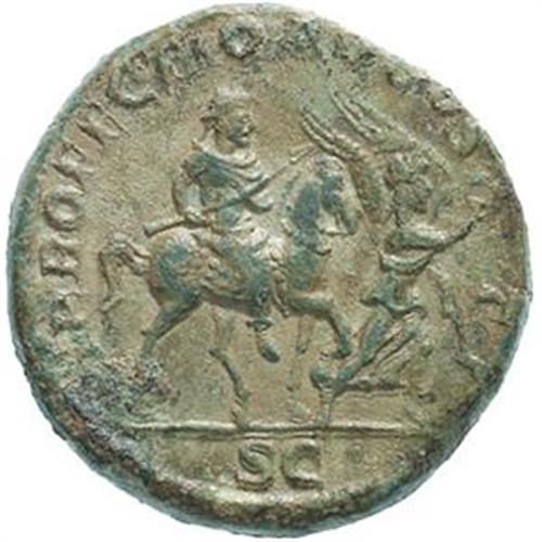 Roman Empire Coins. Severus Alexander (222-235). Sestertius. D/ Busto laureato a destra. R/ PROFECTIO AVGVSTI SC. L'imperatore su cavallo al passo a destra, preceduto da Vittoria, che tiene corona e ramo di palma. C. 492 (Fr. 15). RIC 596b. gr. 20.05 R. AE. Insignificante ossidazione marginale in ore 8 del R/, altrimenti SPL/SPL+. Esemplare di straordinaria freschezza, con un R/ eccezionalmente ricco di nitidi dettagli e incantevole patina verde chiaro, intatta.