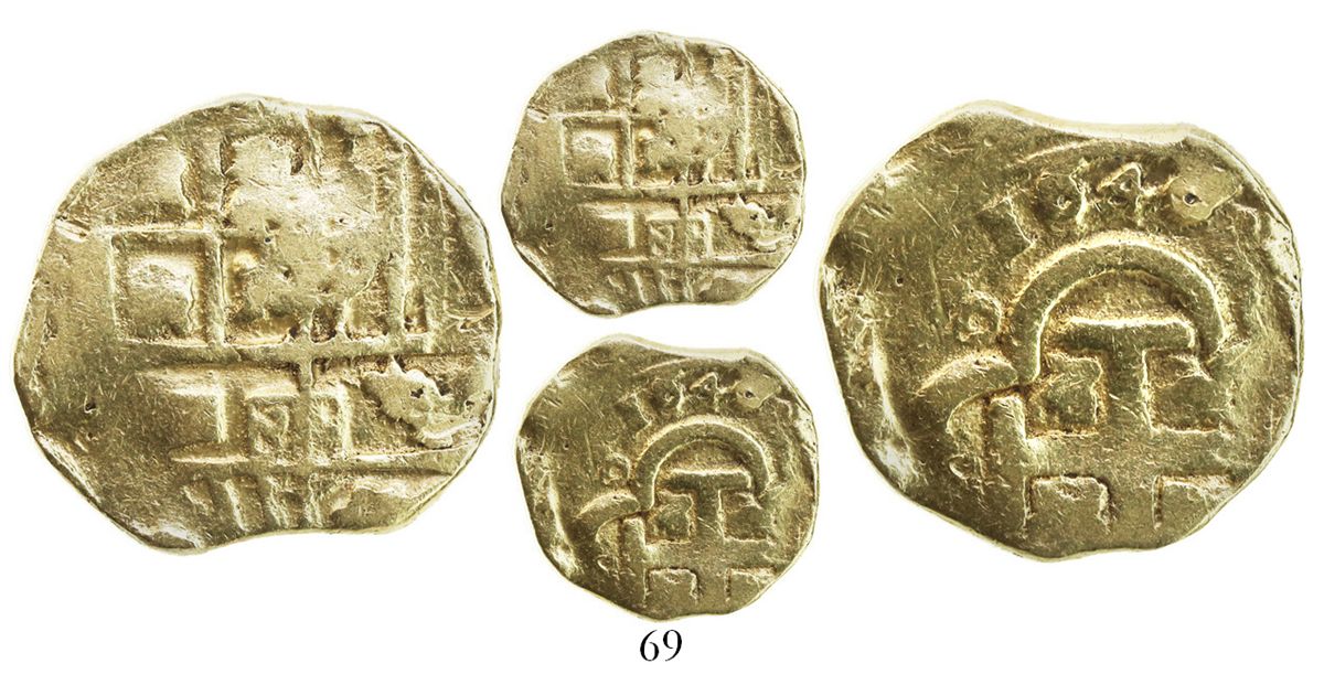Seville(?), Spain, cob 4 escudos, 1648/7, assayer not visible, rare (unlisted date). 13.18 grams. Crude as usual, but with very full and bold date above off-center cross, nearly full shield (no periphery), AVF at best for grade.