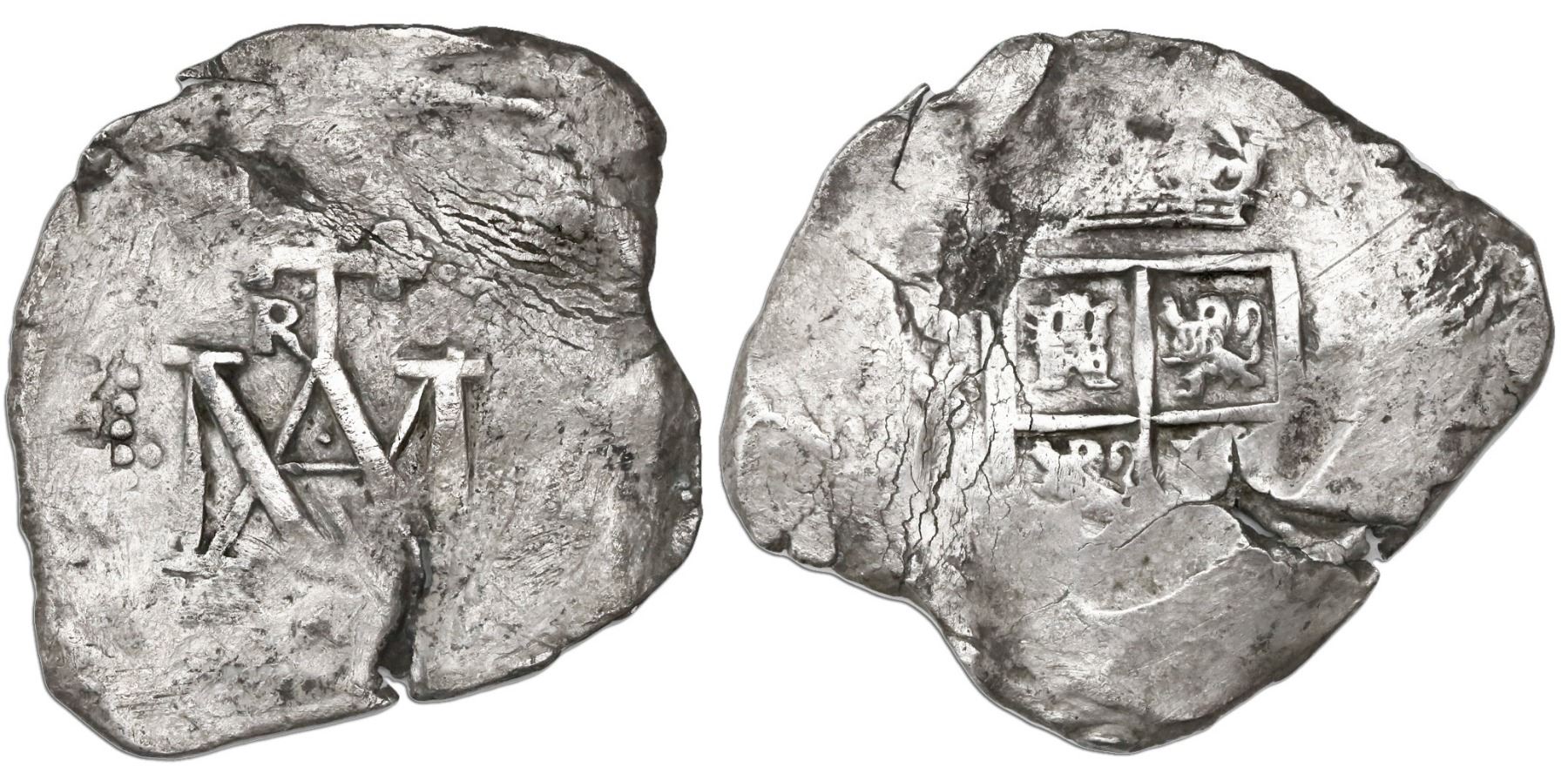 Seville, Spain, cob 8 reales, Charles II, assayer not visible (M), "Maria" type.