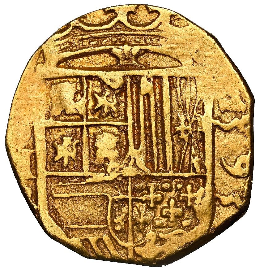 Seville, Spain, gold cob 2 escudos, 1593 date to right, assayer B below denomination and mintmark to