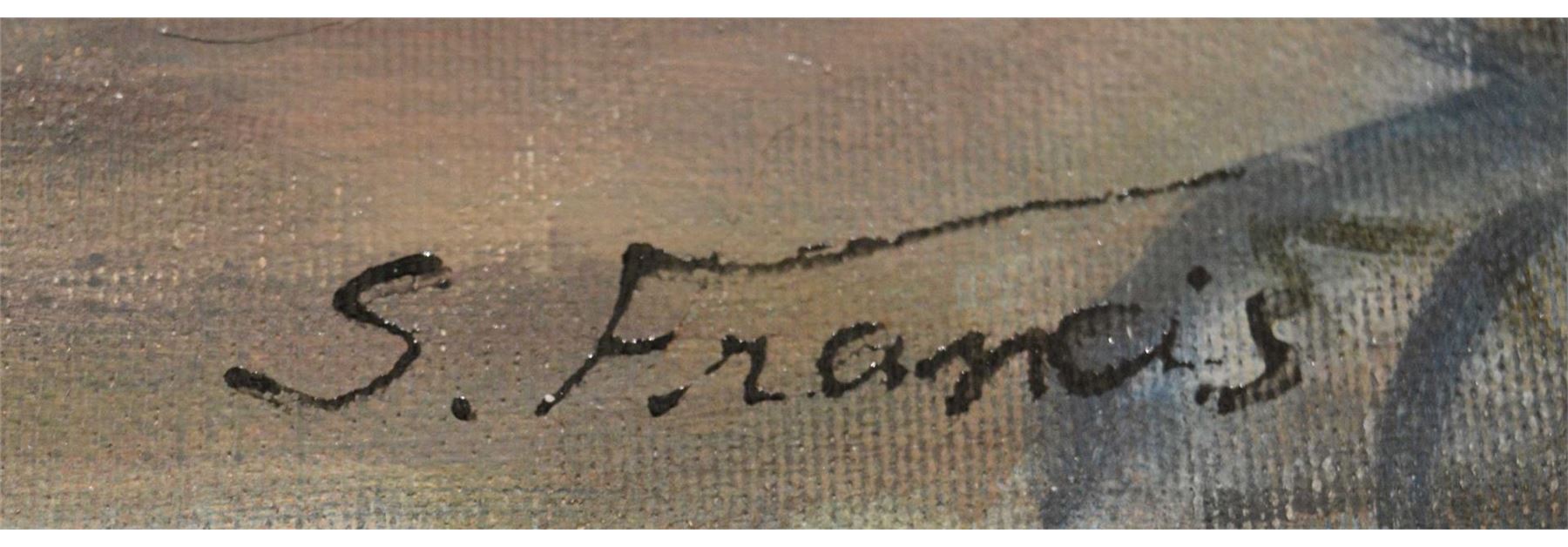 Artist: Sevitt Francis (b. 1942) - Title: Peace - Medium: Original Mixed Media on Canvas - Signature: This one-of-a-kind work is hand-signed by the artist at the bottom of the image - Image Size: Approximately 30 inches x 24 inches - Framed: Stretched and Ready for Framing - Details: This work comes with a Certificate of Authenticity - Biography: Sevitt Francis (b. 1942) is an Irish-Israeli artist and graduate of the world famous Avni Institute of Fine Arts in Tel Aviv. Her work shows a nostalgic look to gentler, kinder times. She is an expert in the use of color, and while rich, they are muted to convey a passion and sensuality that few artists can achieve. Francis' originals have sold for more than $10,000.00.