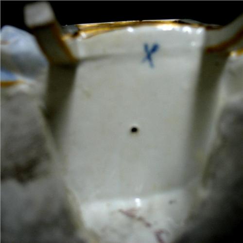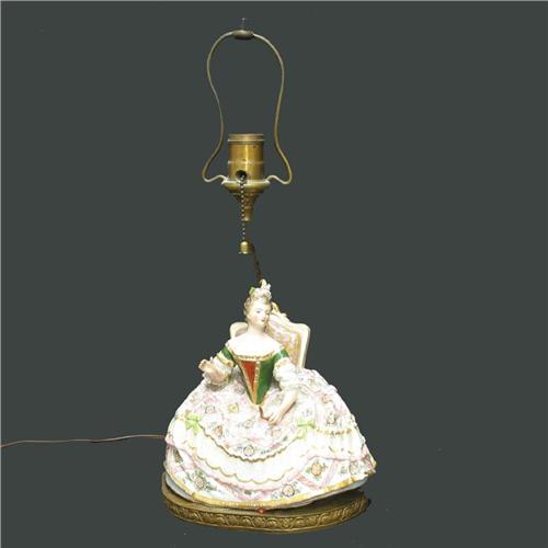 Sevres type French porcelain figural lamp; polychrome hand painted figure of a seated woman; cobalt underglaze mark on bottom and "Made in France"; 20th C.; 9" to top of figure; no visible defects