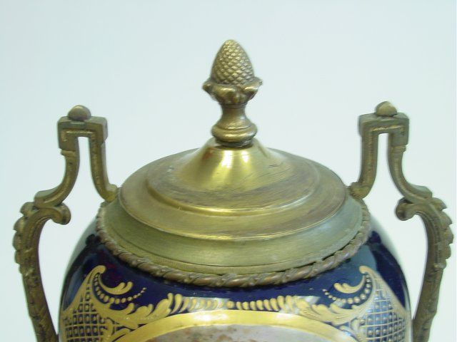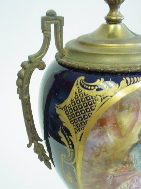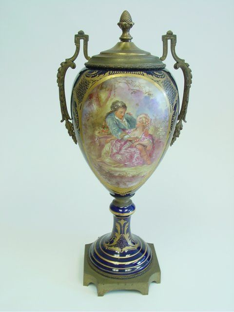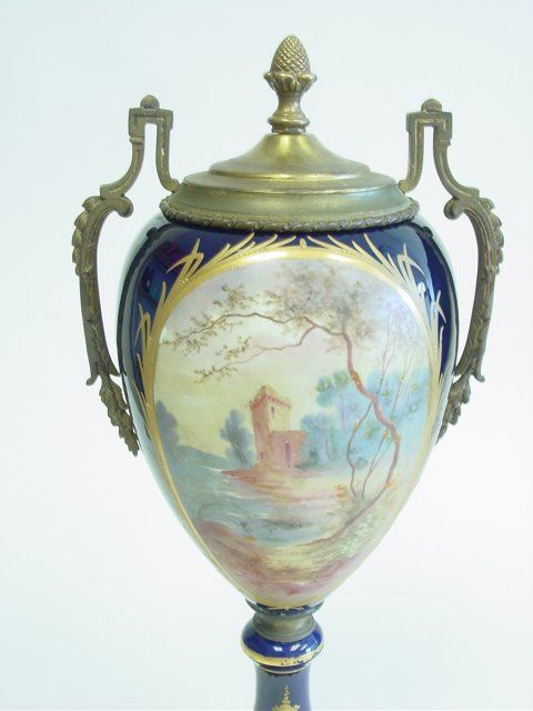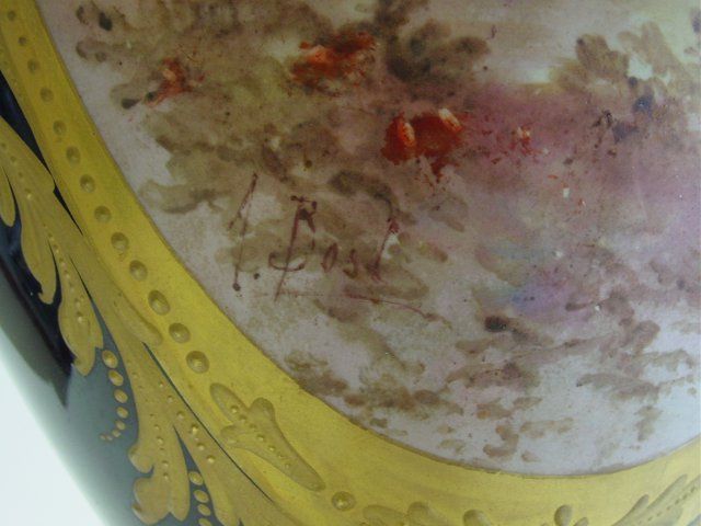 Unmarked, as is, cobalt background. Approx. 20" H. Please read our terms of sale.