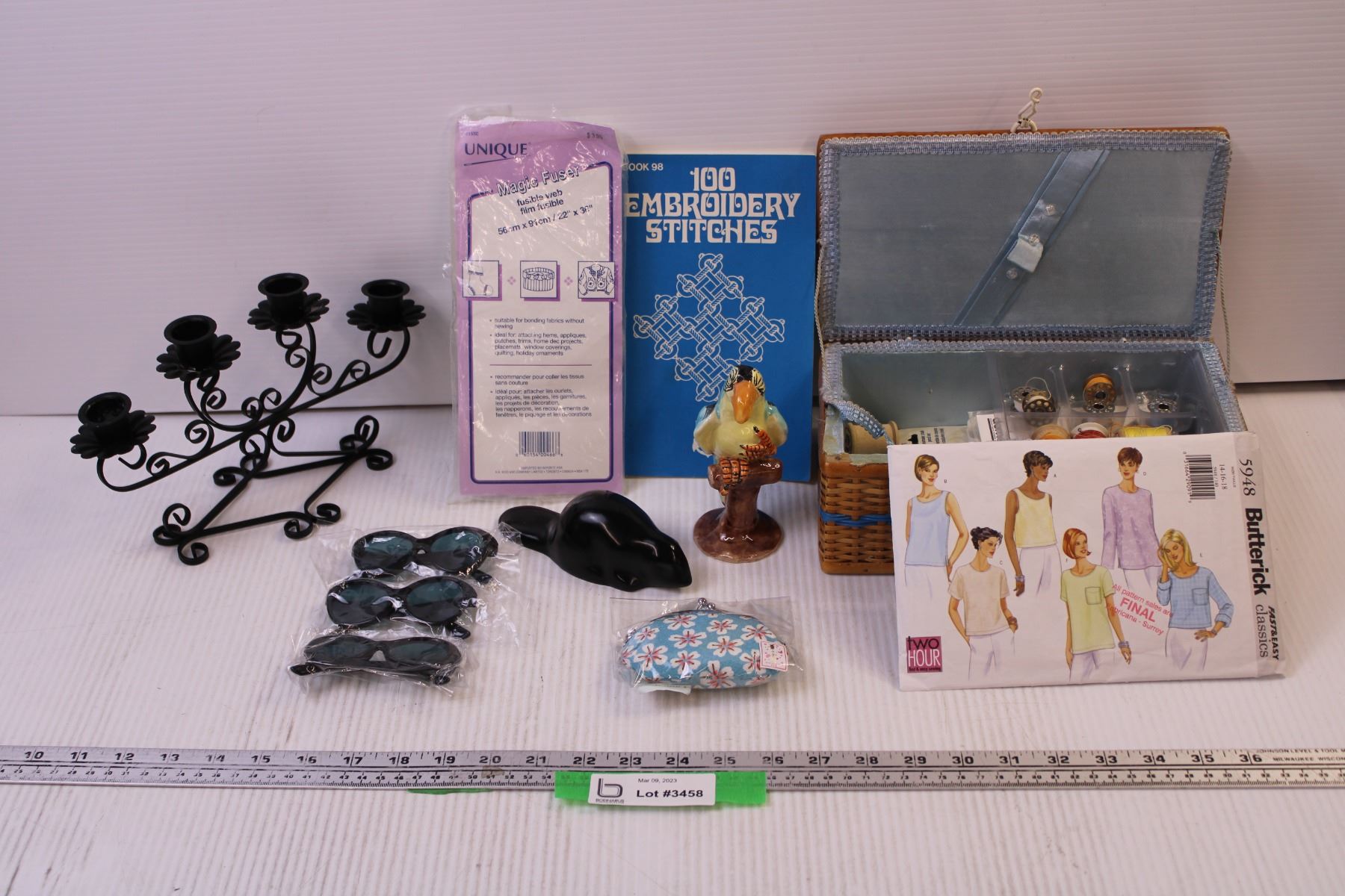 Sewing Supplies and Misc. Small Items Lot (Sewing Box Has Damage to the Inner Lining)