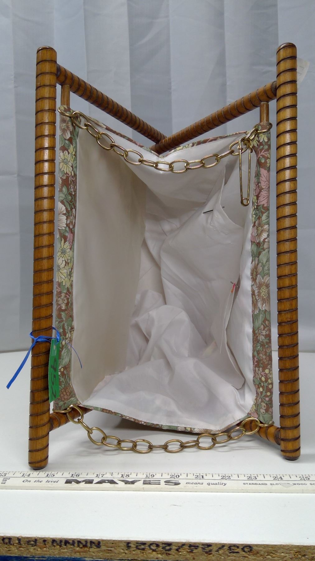 Sewing basket with spindled legs