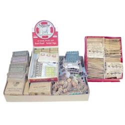 Sewing notions-NOS boxes of Bee's Button & Safety Snap Fasteners & 40+ boxes/cards of buttons, including Pantaloon & Suspender Buttons, all early 1900's.