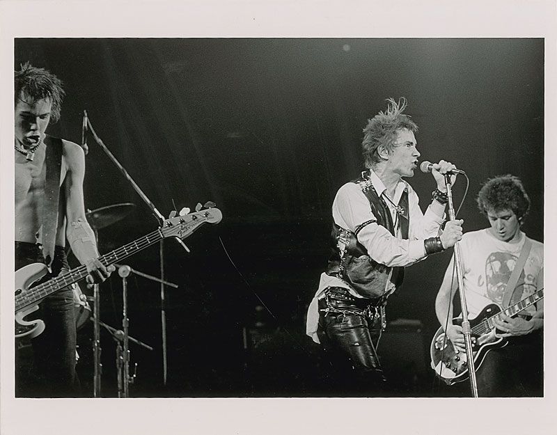 Original unsigned satin-finish 14 x 11 photo of the Sex Pistols in concert, by Richard Creamer. In fine condition. Provenance: Richard Creamer Estate. Creamer was a famous Rolling Stone photographer very active and well known in the 1970s Los Angeles Rock scene. The collection of Creamer photos offered in this auction were kept in his personal collection and several appeared in magazines.
