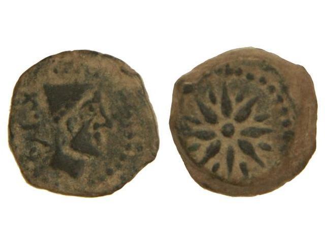 Sextante. - MALACA. - Anv.: Cabeza de Vulcano a derecha con gorro puntiagudo fileteado de puntos, detrás leyenda neopúnica. Rev.: Estrella de dieciséis rayos. 2,80 grs. Pátina verde oscura. AB-1744; G.G.-83. EBC-. - -