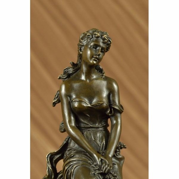A bronze figure of an maiden beauty entitled captive seated on a ledge above a tree trunk, her drapery falling in crumpled folds, and her slippers removed revealing her bare feet. Bronze dimensions with marble base: Height 11 X Width 4 inches. Weight: 7 lbs.Please Note: This is a reproduction bronze sculpture from the original molded and signed. This featured bronze sculpture is a recast after the original, and has been done recently. This 100% bronze sculpture is an abstract piece certain to be a conversation piece.Please Note: This is a reproduction bronze sculpture from the original molded and signed. This featured bronze sculpture is a recast after the original, and has been done recently. This 100% bronze sculpture is an abstract piece certain to be a conversation piece.