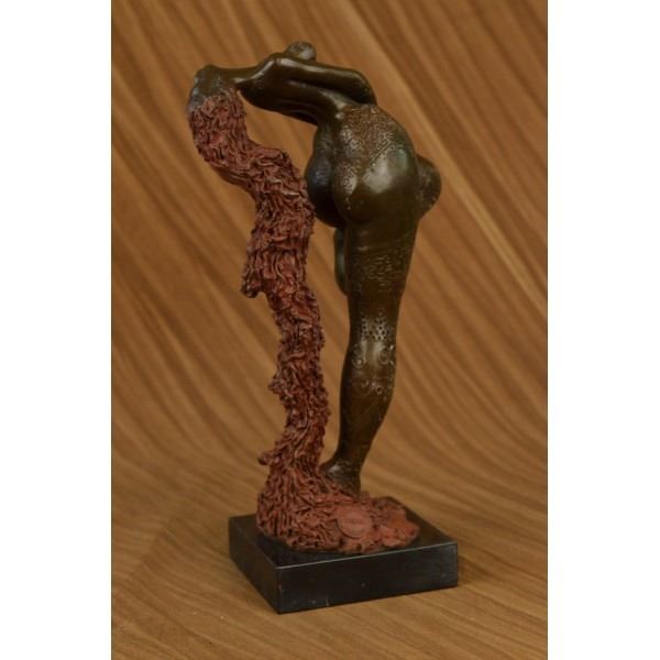 Beautiful bronze statue of a nude plump woman, on a black marble base with wonderful detail, in excellent condition. The statue is cast bronze, the statue is truly much nicer in person. Bronze dimensions with marble base: Height 5 X Width 6 inches. Weight: 5 lbs. Please Note: This is a reproduction bronze sculpture from the original molded and signed. This featured bronze sculpture is a recast after the original, and has been done recently. This 100% bronze sculpture is an abstract piece certain to be a conversation piece.