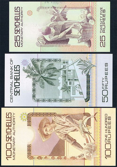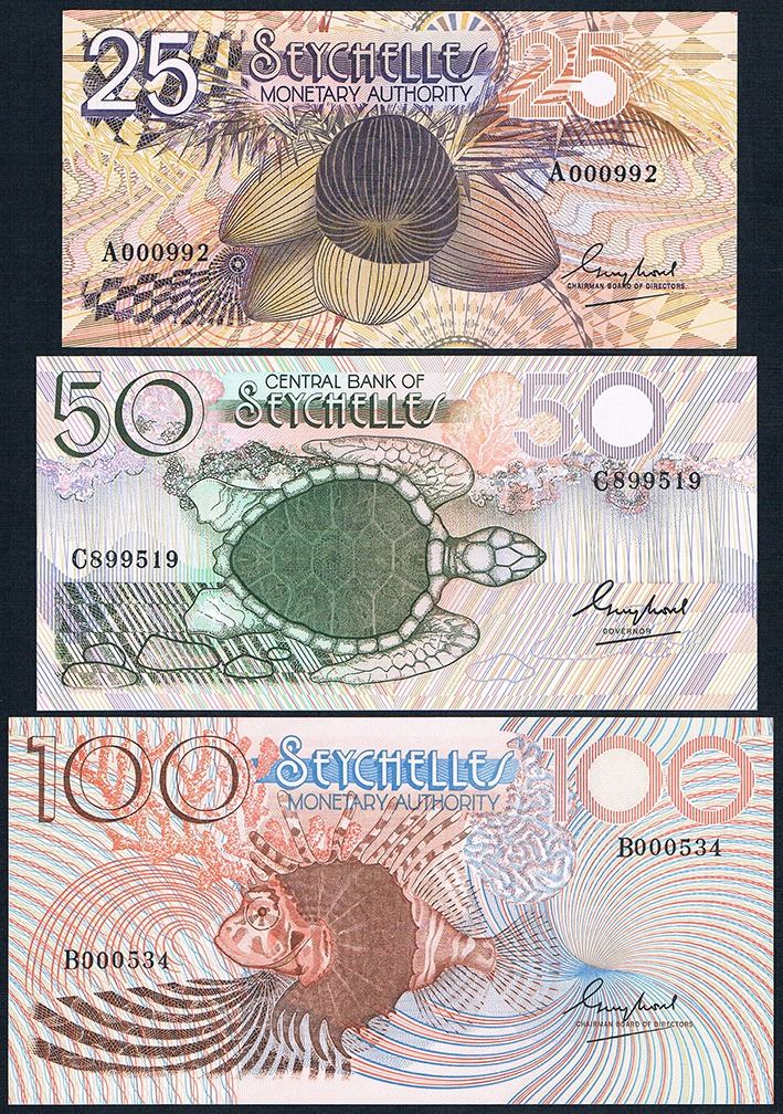 Seychelles, Monetary Authority, Twenty Five - One Hundred Rupees, (P.24a; 26a; 30a), 1979-83, Unc