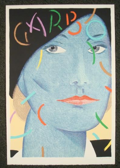 This is a large print of legendary actress Greta Garbo by artist Seymour Chwast. Her enigmatic character is portrayed in a cool blue tone, with colorful letters and lines giving added interest. Artist: Seymour Chwast Title: "Garbo" Series: The "O" Series (in which every subject's name ends in the letter "o.") Sheet size: Each 30 x 43 inches Signature: Signed by the artist, in pencil, lower right Edition: Numbered from an edition of 200 in pencil, lower left Condition: Excellent Certificate of Authenticity: IncludedThis Garbo print by Chwast is a colorful impression of the intriguing silver screen icon. Biography: * Seymour Chwast was born in New York, and studied illustration and graphic design at The Cooper Union. Paul Klee and Georges Rouault were some of his formative influences. The style he developed, with thick bold outlines, had a visual impact on the world contemporary art, design, and advertising. He founded Push Pin Studios to bring a new vitality to graphic design, with an emphasis on hand drawn illustration. His art found its way into posters, packaging, record-sleeves, magazines and children's books. His work has been exhibited in many fine institutions. Chwast and his studio were honored at the Louvre in Paris in a retrospective exhibition. His posters are in the permanent collection of New York s Museum of Modern Art, The Cooper-Hewitt Museum of The Smithsonian Institution, and The Library of Congress. *