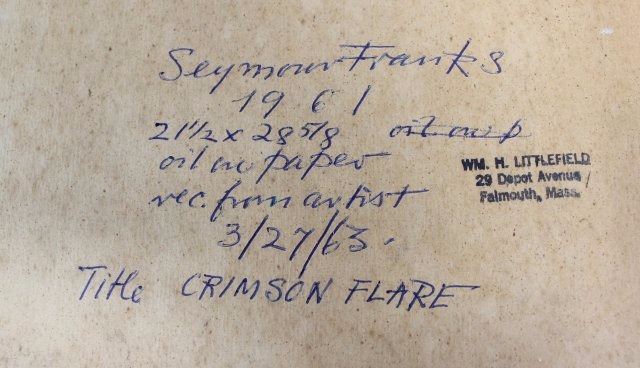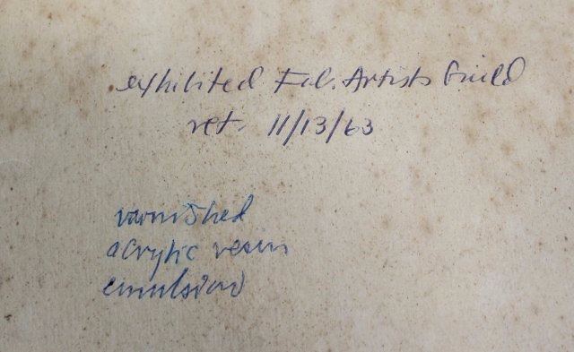 Signed Dated 1961 lower right. Also signed, titled on rear. 21 1/2" x 28 5/8" Warping