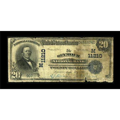 <B>Seymour, IA</B></I> - $20 1902 Plain Back Fr. 658 <B>The Seymour NB</B></I> Ch. # (M)11210<BR> This is the first $20 Plain Back to be reported from this Wayne County institution. Pen signatures have remained intact despite the margin weakness and slight staining seen. <B>About Good-Good</B></I>.<BR><BR><b>Shipping:</b> Coins & Currency (<a target="_blank" href="http://www.heritageauctions.com/common/shipping.php">view shipping information</a>)