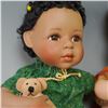 This charming set features two Seymour Mann Signature Series porcelain baby dolls, each measuring 13 inches tall. One baby has red hair styled in pigtails and wears a rust-orange tunic, while the other has curly dark hair and wears a green tunic. Both dolls are crafted with lifelike features including expressive hand-painted eyes, delicately blushed cheeks, and detailed fingers and toes. Each holds a plush teddy bear and comes with their original Signature Series hang tags. The set is part of a limited edition run of 1200 pieces, with this pair numbered 532, as documented in the included Certificate of Authenticity signed by artist J.C. Lee.