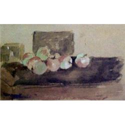 Seymour Remenick "Apples #11", signed Remenick (L.L.), framed ink and watercolor, listed American, image measures 5" x 8"
