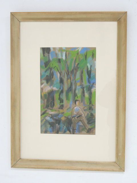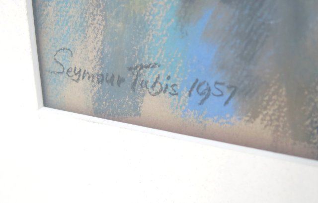 Gouache. Framed. Figural abstract. Signed & dated 1957 lower left. Seymour Tubis, American (1919-1993).