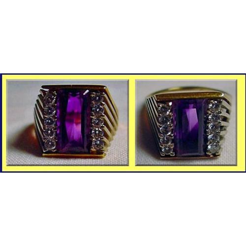 <tr><td>Title:Sgnd 14K GOLD AMETHYST DIAMOND ART DECO RING </td></tr>