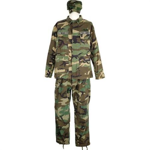 <B>"Sgt. Bilko" Steve Martin Screen-Worn Costume.</B></I> Sgt. Bilko's uniform featuring a long-sleeved camouflage shirt with "Bilko" and "US Army" largely applied to the chest, matching uniform pants, hat and web belt, as worn by Steve Martin as "Master Sergeant Ernest G. Bilko" in the 1996 movie based on <I>The Phil Silvers Show</B></I>. <I>Authenticated by the world's foremost curators of television artifacts, The Comisar Collection of Beverly Hills.</B></I><BR><BR><b>Shipping:</b> Clothing, Costumes & Jerseys (<a target="_blank" href="http://www.heritageauctions.com/common/shipping.php">view shipping information</a>)