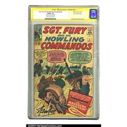 Sgt. Fury and his Howling Commandos #3 Stan Lee File Copy (Marvel, 1963) CGC FN/VF 7.0 Cream to off-white pages. Signature Series. Fury and his commandos face insurmountable odds at midnight on massacre mountain. With action from cover to cover and Stan Lee's signature on the bottom left of the cover, this is a book everyone will enjoy. Overstreet 2002 FN 6.0 value = $60; VF 8.0 value = $140. Important notice: We expect to be auctioning lots at the rate of 200-250 per hour. Sometimes eBay Premier live bid software cannot keep up with that pace, so we strongly recommend that you place a realistic proxy bid now as insurance to avoid disappointment. Also please note that all Heritage/CAA lots purchased through eBay Premier carry a 20% Buyer's Premium. Please make sure you read the Terms and Conditions.