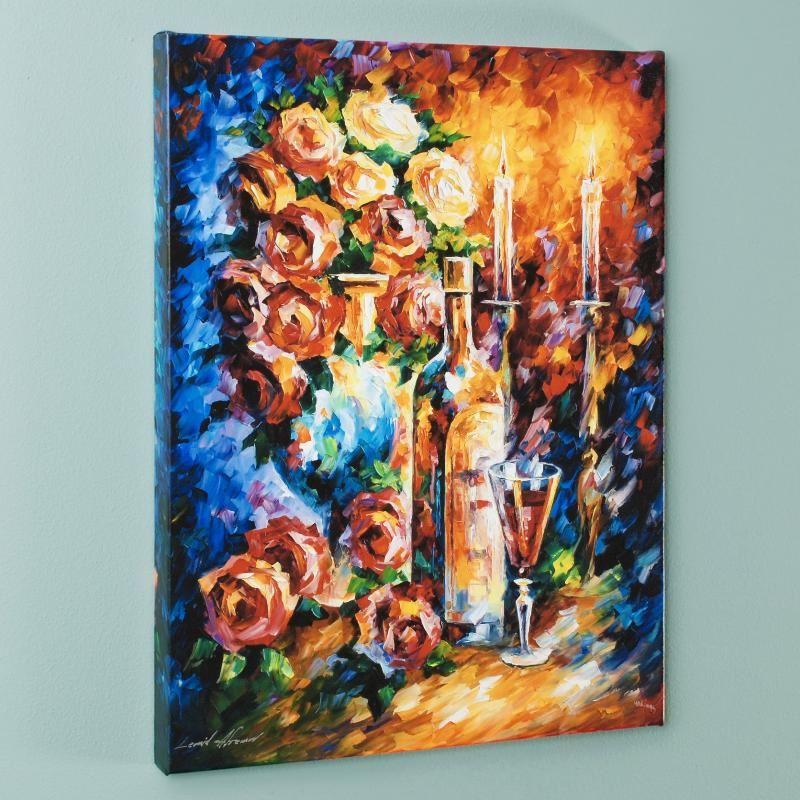 Leonid Afremov's masterful use of color and texture make his paintings unique collectibles that are sure to brighten any wall. "Shabbat II" is a limited edition giclee on stretched canvas, numbered in verso and bears Afremov's authorized signature. This piece comes gallery wrapped and ready to hang. Includes Certificate of Authenticity! Measures approx. 18" x 24" (image).