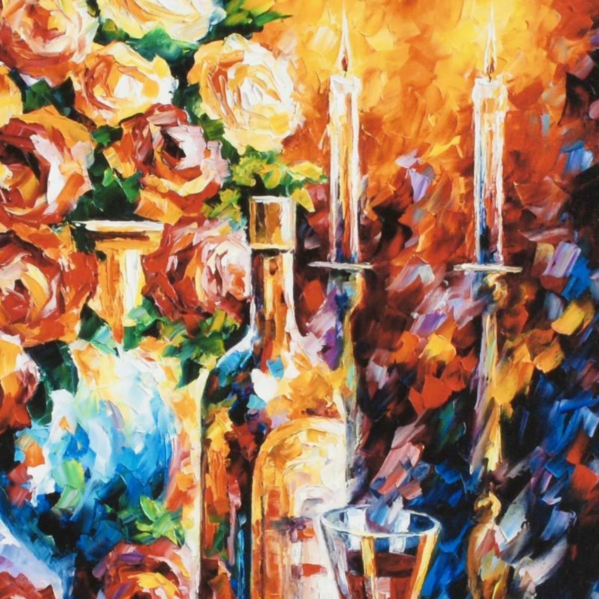 Leonid Afremov's masterful use of color and texture make his paintings unique collectibles that are sure to brighten any wall. "Shabbat II" is a limited edition giclee on canvas. The piece is numbered and bears the artist's authorized signature. This piece comes gallery wrapped. Includes Certificate of Authenticity! Measures approx. 18" x 24" (image).