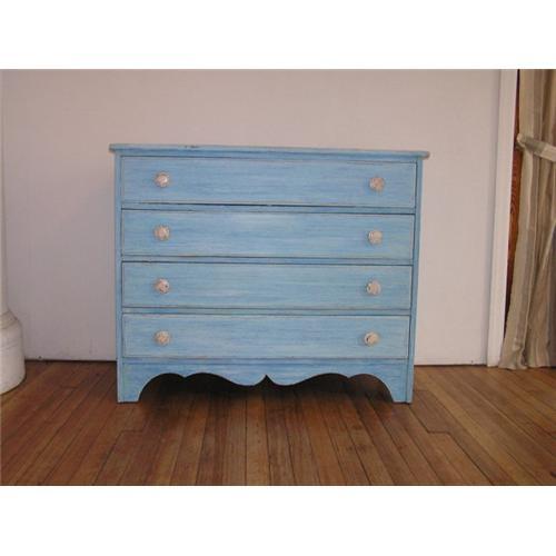 <tr><td>Title:Shabby Blue Maple Dresser Circa 1950</td></tr>