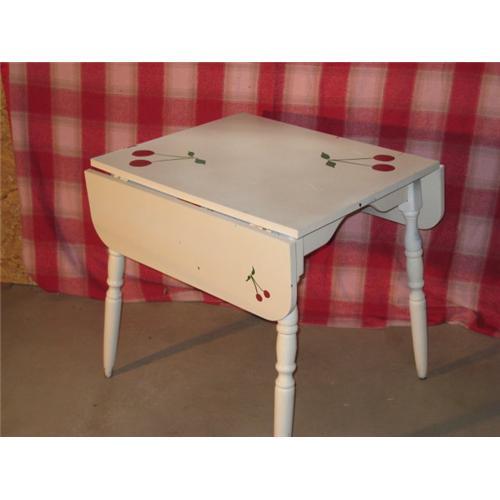 <P>Table is painted white with some large red cherry accents.