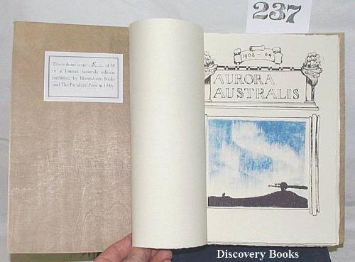 Shackleton, E. H. AURORA AUSTRALIS. A fine facsimile reproduction of this most prized and valuable of Antarctic books. One of only 58 copies, published in England by Bluntisham books in 1986, and sold out almost immediately. Authentic to the last detail, including the 3 ply boards, cord lacing, etc. As new in folding box, with 20pp illustrated brochure concerning the history of Aurora Australis, the original of which was printed in the Antarctic during Shackleton's 1907-09 expedition, in an edition of less than 100 copies.