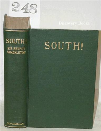 Shackleton, Ernest. SOUTH. THE STORY OF SHACKLETON'S LAST EXPEDITION 1914-1917. New York: Macmillan 1920 xxi,380pp. Many photo illus incl. color frontis, folding map. Original dark green cloth, clean & bright