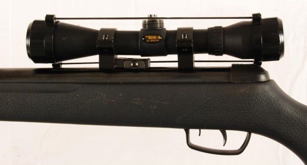 With BSA .22 Special Scope. Barrel measures 18". 1000 feet per second.