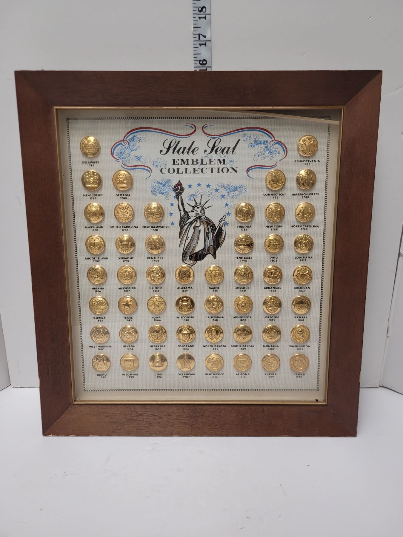 Shadow Box Framed State Seal Emblem Collection Under Glass
