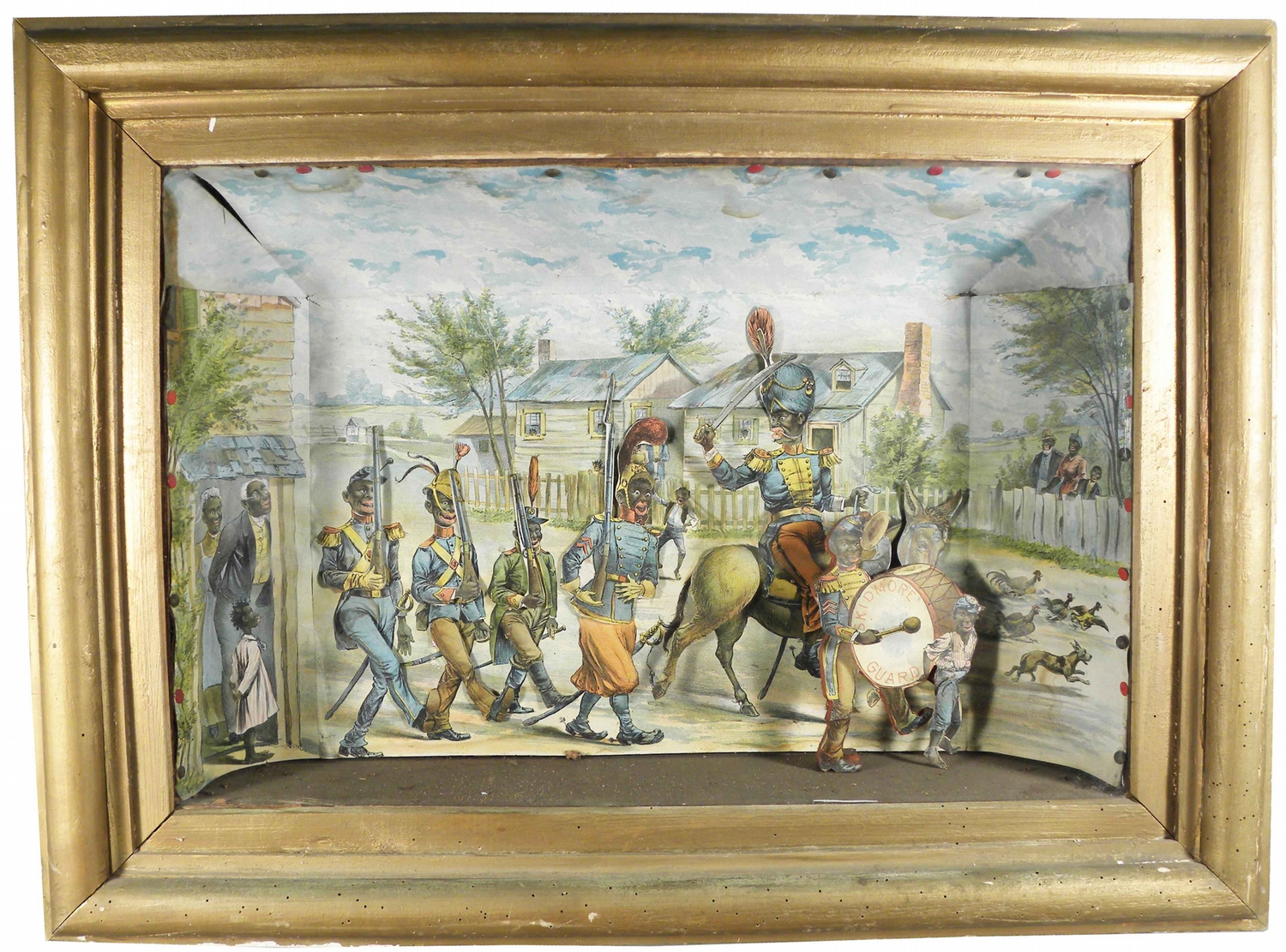 Shadow Box Mechanical Sign. Depicting Skidmore Guard, Black Americana image. Excellent working condition. 33 X 25 X 11 inches.