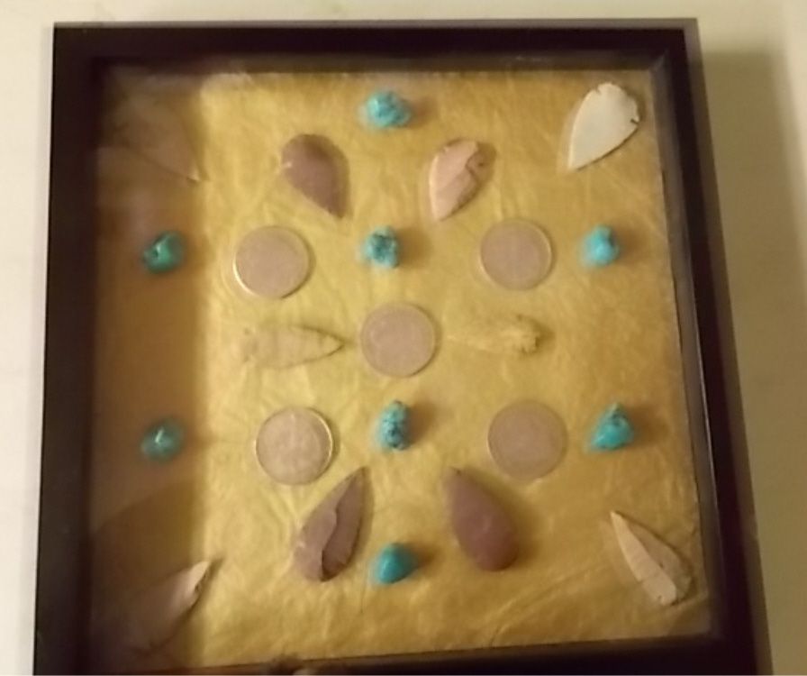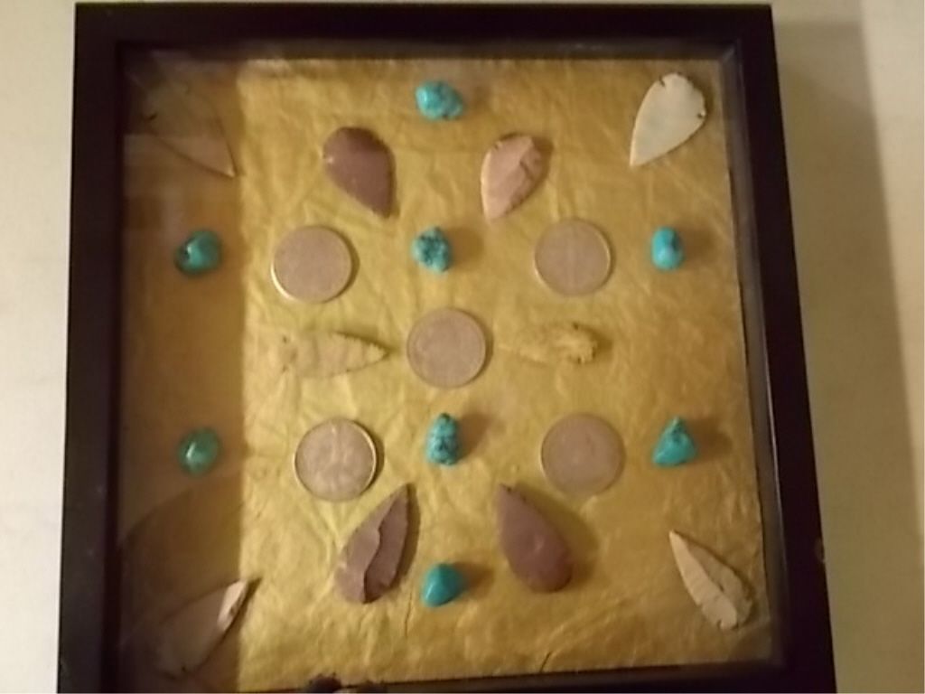 Shadow Box Turquoise-Arrow Heads- Silver Dollars