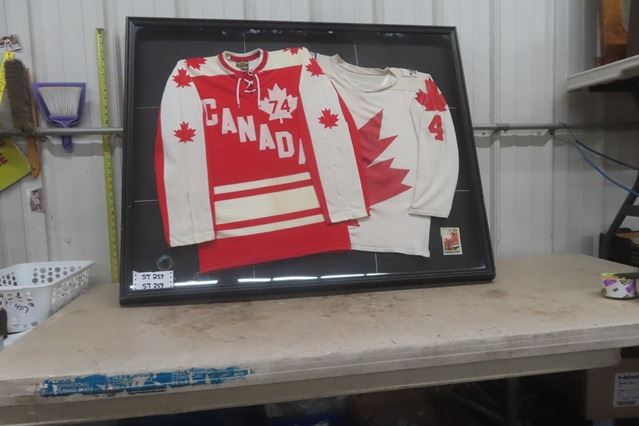 Shadow Box with 1974 Team Canada + '76 Canada Cup Jerseys #4 Bobby Orr 36" x 45"