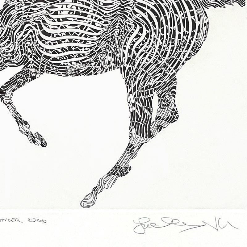 "Shadow Dancer" is a limited edition etching on paper by Guillaume Azoulay, PP numbered II/III and hand signed by the artist. This piece comes custom framed. Includes Letter of Authenticity. Measures approx. 26" x 26.5" (frame), 16" x 16" (image).