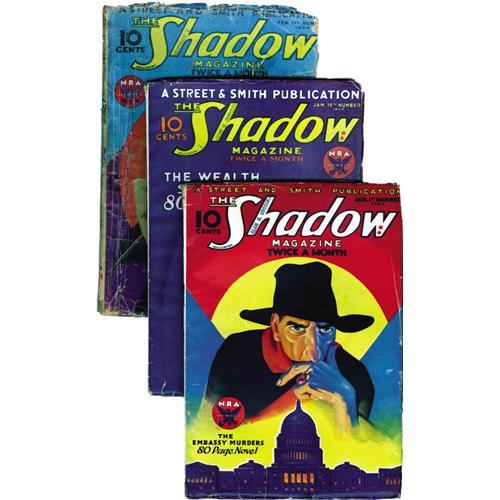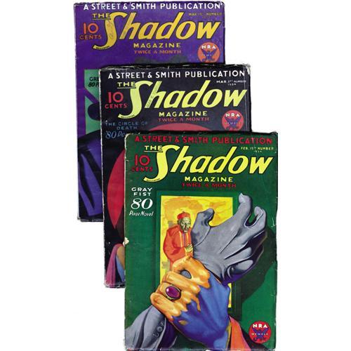 <B>Shadow (Pulp) Group (Street & Smith, 1934) Condition: Average GD/VG.</B></I> Here is a complete run of bi-monthly <B>Shadow</B></I> pulps for the year of 1934. The July 1, 1934 issue is signed by both Walter Gibson and cover artist George Rozen. Most have very nice paper quality. Bookery's Guide to Pulps approximate value for group = $2,400. <BR><BR><B>Important notice:</B> Heritage usually auctions material at the rate of 200-250 lots per hour. On some occasions eBay Live bid software or the Internet may not be able to keep up with the pace of the auction. We recommend placing a realistic absentee bid now as insurance to avoid disappointment. Occasionally the auctioneer may eliminate or reject an eBay Live bid, and the auctioneer may also reopen a lot after the close of the eBay live bidding (usually because we missed an audience bid), and may reject your bid even if it shows you as the winning bidder. By bidding via eBay Live, you agree that Heritage may award the lot to another bidder at its sole discretion under the circumstances described above or any other reasonable circumstances. Since eBay bids are not shown to us until we open the lot on the floor, we treat those bids just like floor bids. In most cases the floor responds before the eBay bid is presented to us, due to Internet lag time, so for consistency we have made it a policy that floor bids are always considered first over tie eBay live bids. Also please note that all Heritage lots purchased through eBay Live carry a 22.5% Buyer's Premium. Please make sure you read the Terms and Conditions before you bid. This lot is being auctioned in conjunction with a live floor auction by Heritage Auction Galleries. All final auction and invoice information will be supplied by Heritage Auction Galleries, and all other information should be considered preliminary. Lot:41001 <BR><BR><B>Winning Notification and Billing:</B> After the FINAL session in this auction is complete, Heritage will send e-mail and snail mail invoices. This process normally takes several days. All final auction and invoice information will be supplied by Heritage Auction Galleries, and all other information should be considered preliminary. <BR><BR>This auction will be conducted on a live auction floor and over the Internet through eBay Live. If you choose to place an absentee bid, please take a moment to <font color='#0000ff'><u><a href='http://pages.ebay.com/liveauctions/help/before/laabsentee.html'>learn how eBay Live absentee bidding works</a></u></font><font color='#000000'>
