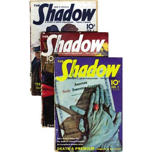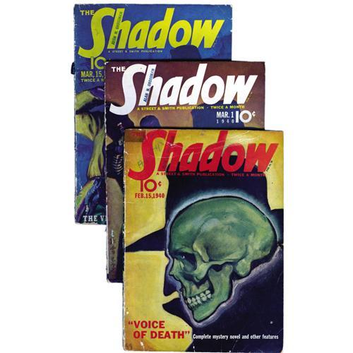 <B>Shadow (Pulp) Group (Street & Smith, 1940) Condition: Average GD/VG.</B></I> Here is a complete run of bi-monthly <B>Shadow</B></I> pulps for the year of 1940. Highlights include the third and fourth (final) appearance of Shiwan Khan. Most have very nice paper quality. Bookery's Guide to Pulps approximate value for group = $800. <BR><BR><B>Important notice:</B> Heritage usually auctions material at the rate of 200-250 lots per hour. On some occasions eBay Live bid software or the Internet may not be able to keep up with the pace of the auction. We recommend placing a realistic absentee bid now as insurance to avoid disappointment. Occasionally the auctioneer may eliminate or reject an eBay Live bid, and the auctioneer may also reopen a lot after the close of the eBay live bidding (usually because we missed an audience bid), and may reject your bid even if it shows you as the winning bidder. By bidding via eBay Live, you agree that Heritage may award the lot to another bidder at its sole discretion under the circumstances described above or any other reasonable circumstances. Since eBay bids are not shown to us until we open the lot on the floor, we treat those bids just like floor bids. In most cases the floor responds before the eBay bid is presented to us, due to Internet lag time, so for consistency we have made it a policy that floor bids are always considered first over tie eBay live bids. Also please note that all Heritage lots purchased through eBay Live carry a 22.5% Buyer's Premium. Please make sure you read the Terms and Conditions before you bid. This lot is being auctioned in conjunction with a live floor auction by Heritage Auction Galleries. All final auction and invoice information will be supplied by Heritage Auction Galleries, and all other information should be considered preliminary. Lot:41001 <BR><BR><B>Winning Notification and Billing:</B> After the FINAL session in this auction is complete, Heritage will send e-mail and snail mail invoices. This process normally takes several days. All final auction and invoice information will be supplied by Heritage Auction Galleries, and all other information should be considered preliminary. <BR><BR>This auction will be conducted on a live auction floor and over the Internet through eBay Live. If you choose to place an absentee bid, please take a moment to <font color='#0000ff'><u><a href='http://pages.ebay.com/liveauctions/help/before/laabsentee.html'>learn how eBay Live absentee bidding works</a></u></font><font color='#000000'>